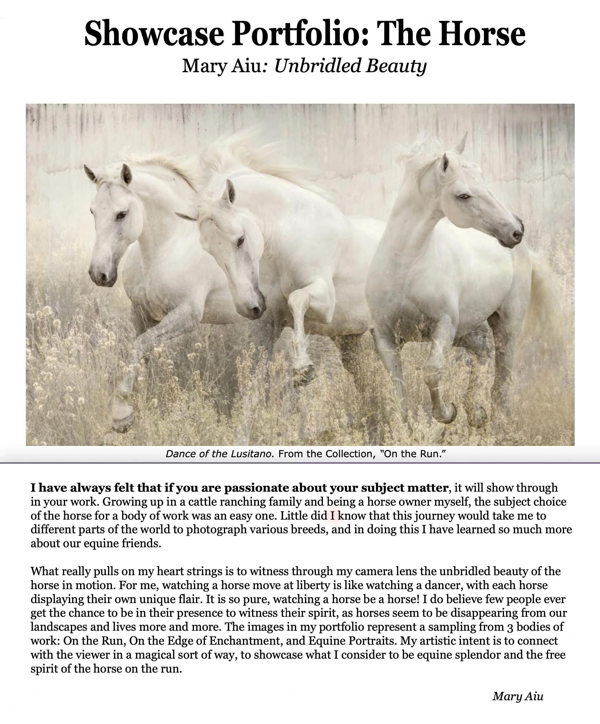 Shadow & Light Magazine has selected my portfolio of 12 images to appear in their special issue of The Horse